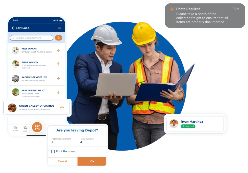 Remove paper trails with ePOD, assign rate cards, and send invoices instantly on our app.