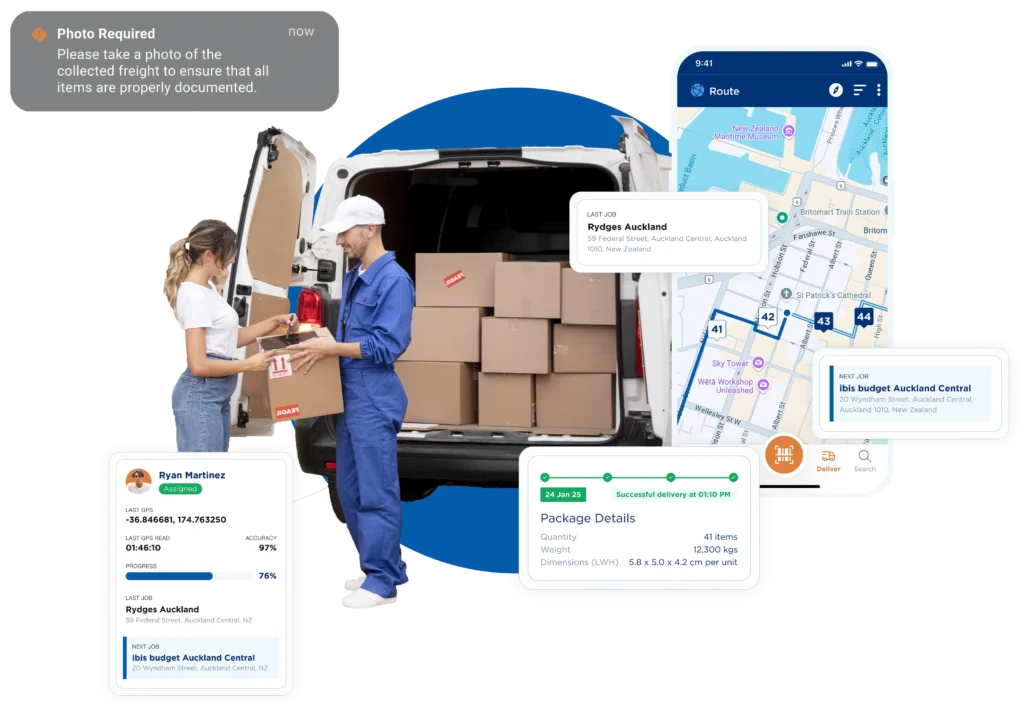 Remove paper trails with ePOD, assign rate cards, and send invoices instantly on our app.