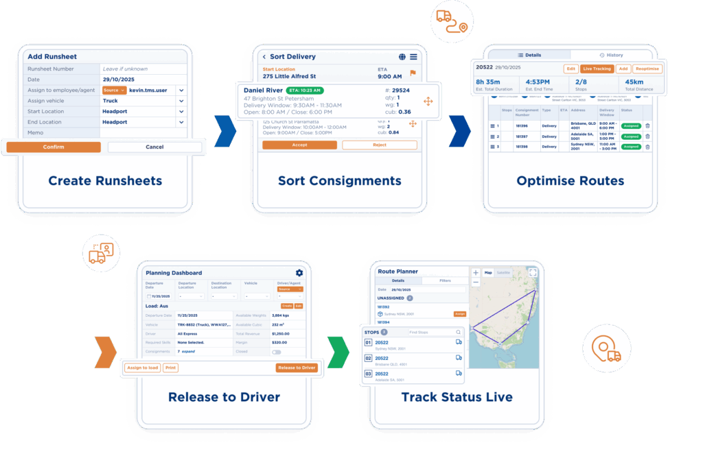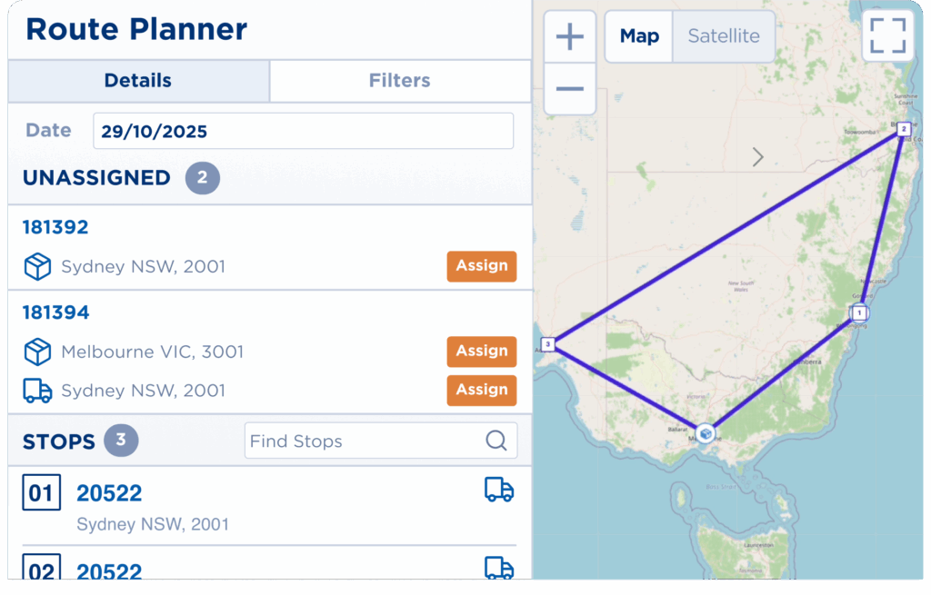 Save hours each day by letting automation handle your runsheet planning. The system automatically generates, assigns, and optimises delivery runs based on driver availability, delivery constraints, and smart routing tech.