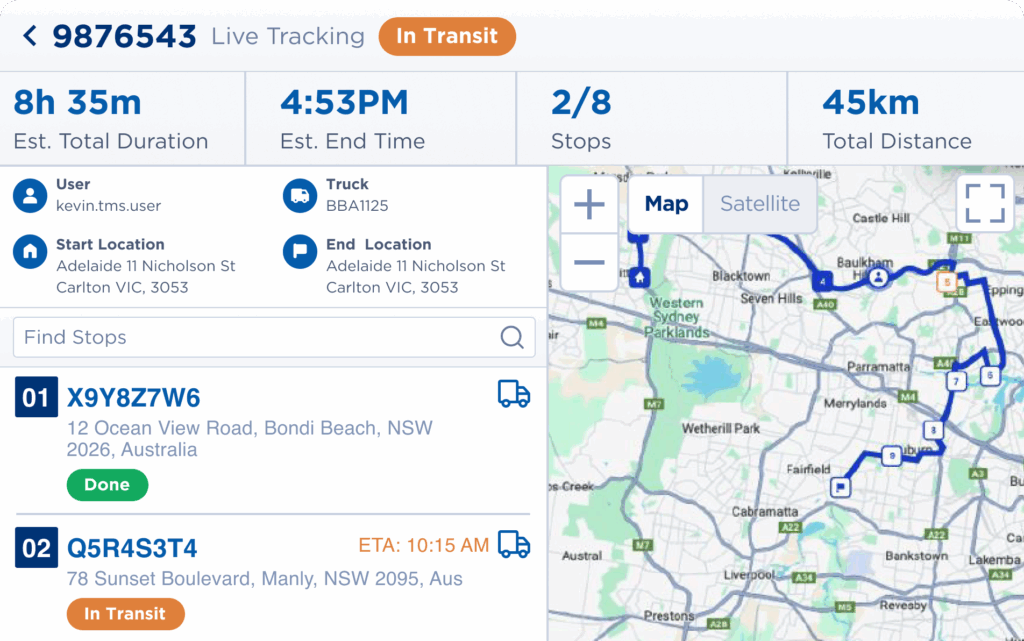 Avoid delays and detours with our last mile route optimisation software! Ensure drivers are taking the most efficient GPS-guided path when delivering. No need to switch apps, get real-time, turn-by-turn navigation within Transvirtual for a more seamless delivery process.